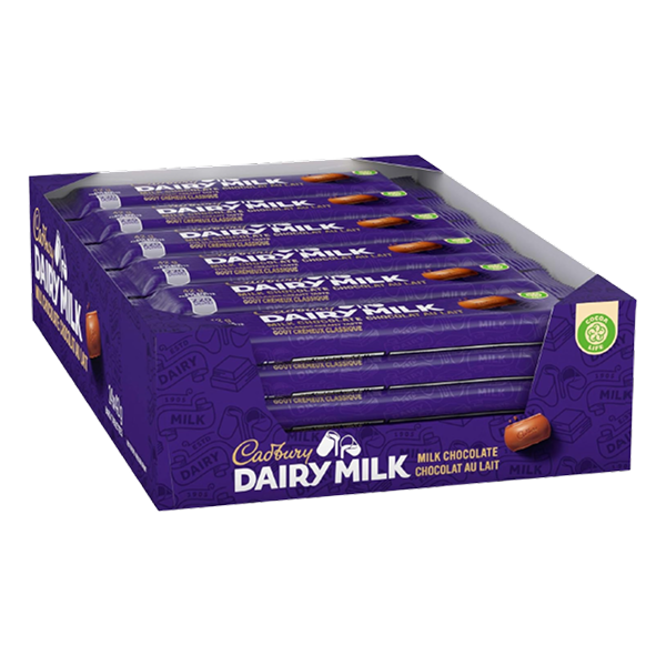 The timeless taste of Cadbury Dairy Milk, made with 100% sustainably sourced cocoa. This box contains 24 full-size bars, perfect for daily indulgence or sharing.