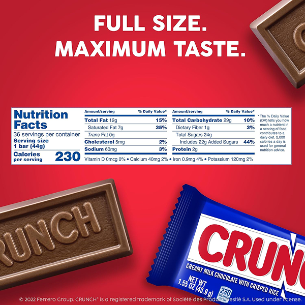 Nestle Crunch Chocolate Single, Candy Bars (Pack of 36)