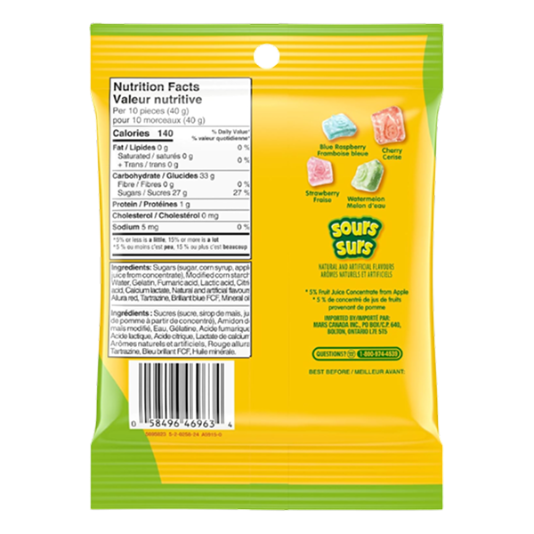 STARBURST goes gummy! Enjoy all the chewy fruit flavors you love, now in a fun sour gummy form. Featuring cherry, strawberry, blue raspberry, and watermelon. A perfect treat for on-the-go snacking!